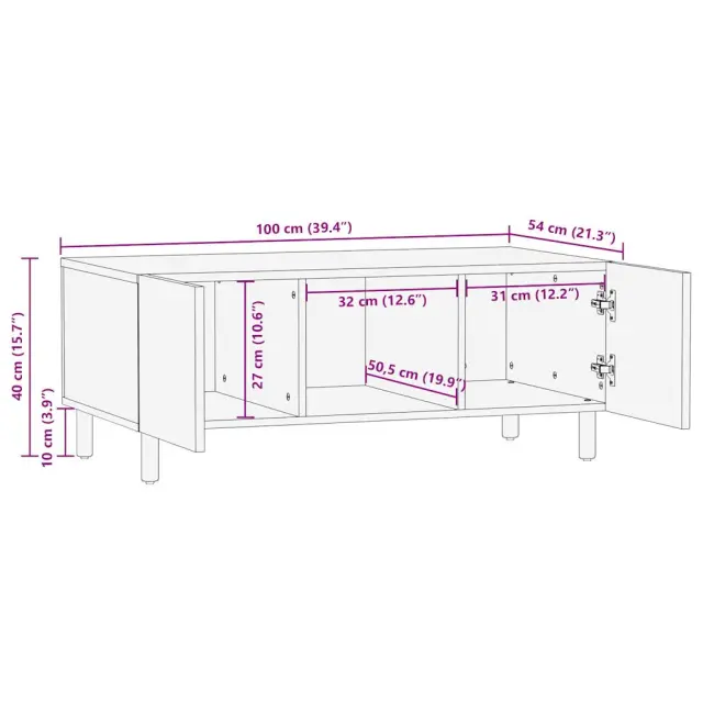 vidaXL Kava miza črna 100x54x40 cm Masivni neobdelan les Mango