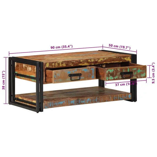 vidaXL Kava miza Multicolor 90x50x38 cm masivni les obnovljen