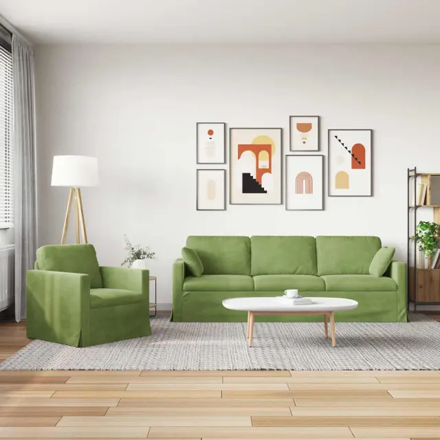 vidaXL Kavč 2 pcs Svetlo zelena