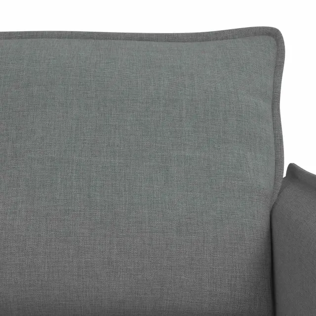 • Vzdržljiva konstrukcija: Ta kavč je zgrajen z močnim kovinskim okvirjem, kar zagotavlja stabilnost in omogoča raznolike postavitve. Leseni naslonjali dodajo estetski element in udobje za pravilno sedenje, kar povečuje njegovo dolgotrajnost.