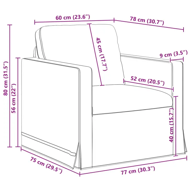 • 1 x Kavč: 78 x 78 x 80 cm (Š x G x V)