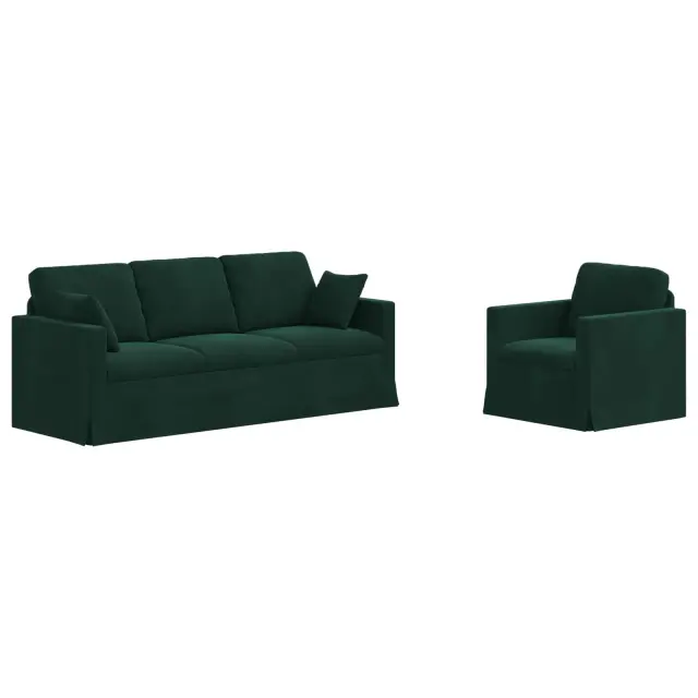 vidaXL Kavč 2 pcs Temno zelena