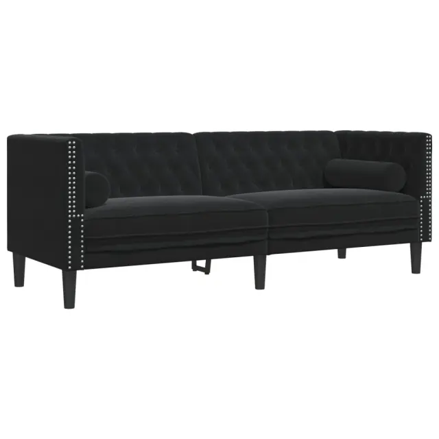 vidaXL Kavč chesterfield z vzglavniki trosed črn žamet