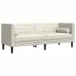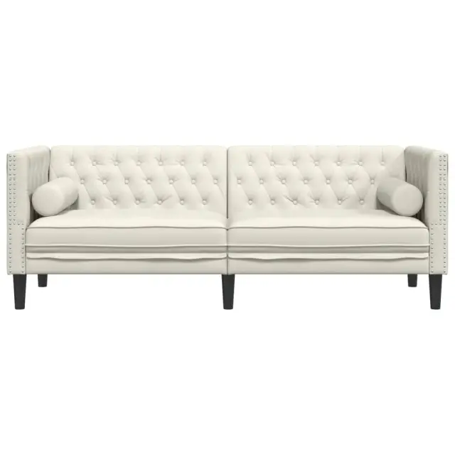 vidaXL Kavč chesterfield z vzglavniki trosed krem žamet