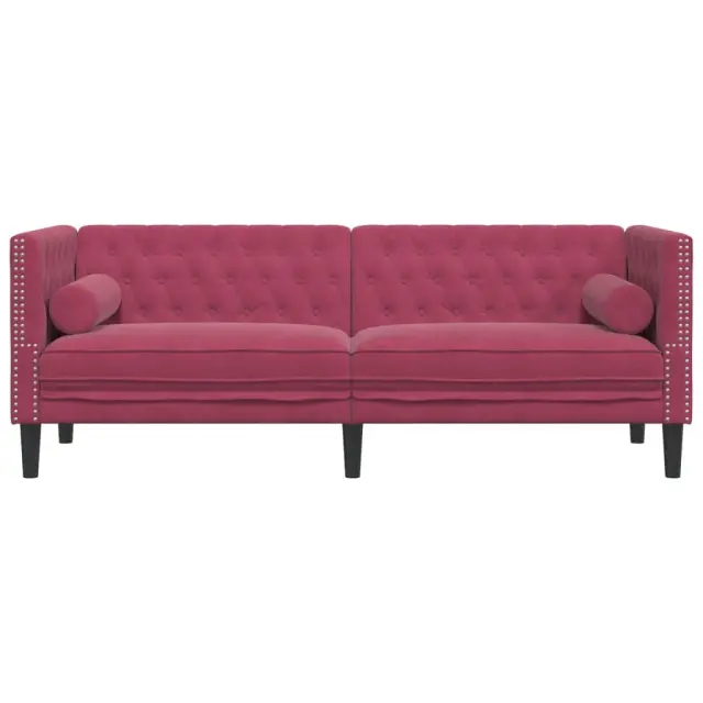 vidaXL Kavč chesterfield z vzglavniki trosed vinsko rdeč žamet