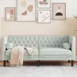 • Stil chesterfield: S klasičnim naslonjalom za hrbet z gumbi in nasloni za roke ter enotno višino naslonjala in naslonov za roke bo popestril vsak prostor, saj zagotavlja slog in udobje.