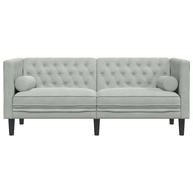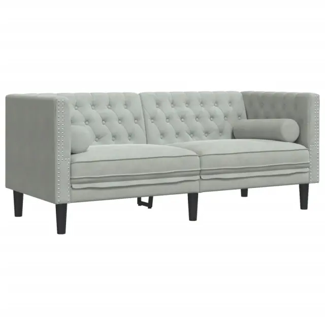 vidaXL Kavč chesterfield z vzglavniki dvosed svetlo siv žamet