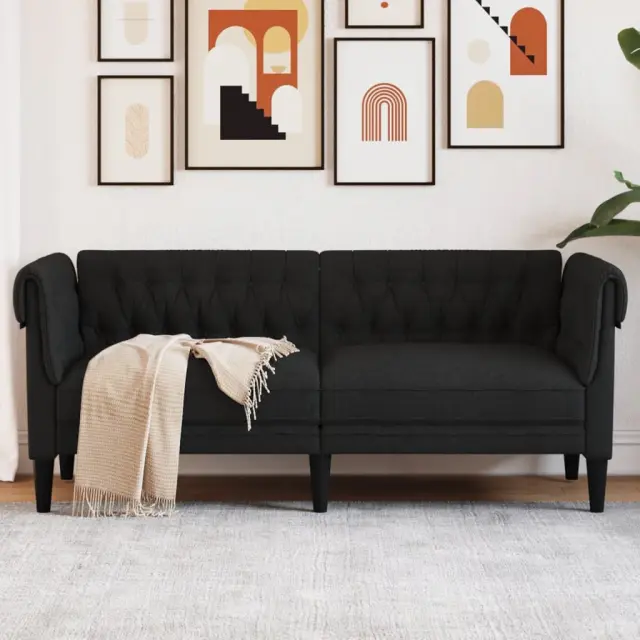 vidaXL Kavč dvosed Chesterfield črna tkanina