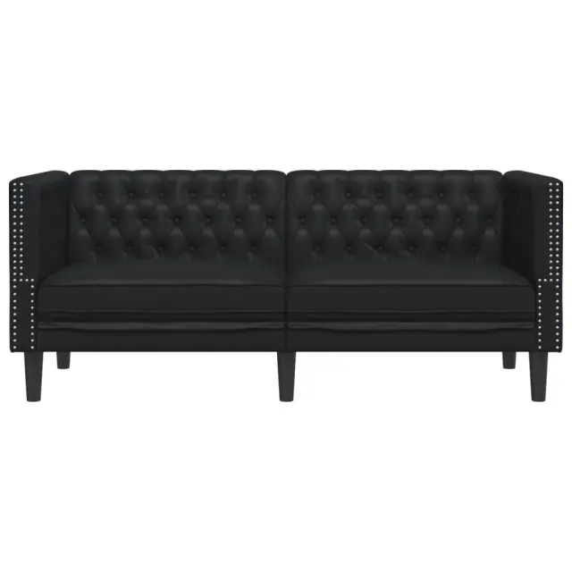 vidaXL Kavč dvosed Chesterfield črna umetno usnje
