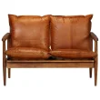 vidaXL Kavč dvosed iz pravega usnja in akacijevega lesa rjave barve