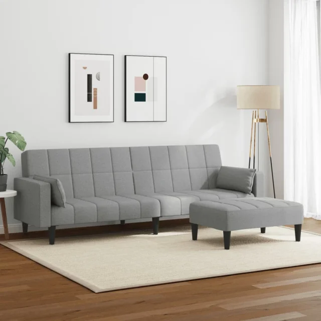 vidaXL Kavč dvosed s stolčkom za noge svetlo sivo blago