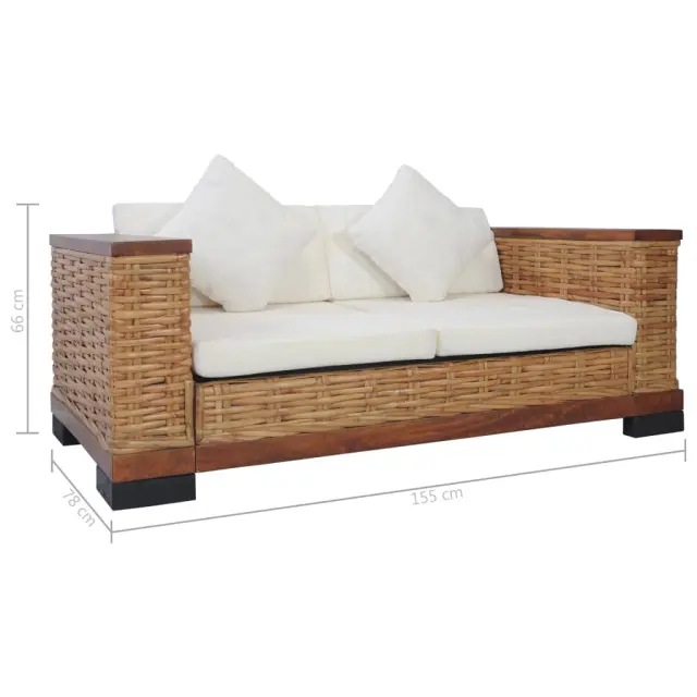 Zahvaljujoč visokokakovostnemu pravemu ratanu je ta kavč enostaven za čiščenje, trpežen in primeren za vsakodnevno uporabo. Ima močan lesen okvir, ki je zelo vzdržljiv in stabilen. Debele blazine in vzglavniki so precej udobni in tudi pralni, saj imajo odstranljive prevleke. Poleg tega široka naslonjala za roke prispevajo k udobnemu sedenju.