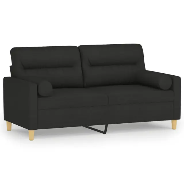 vidaXL Kavč dvosed z blazinami črn 140 cm blago