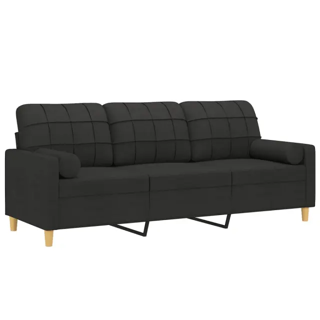 vidaXL Kavč dvosed z blazinami črn 180 cm blago