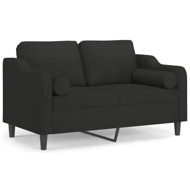vidaXL Kavč dvosed z blazinami črn 120 cm blago
