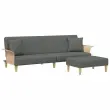 vidaXL Kavč dvosed z blazinami in stolčkom za noge temno siv žamet