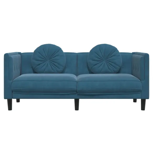 vidaXL Kavč dvosed z blazinami moder žamet