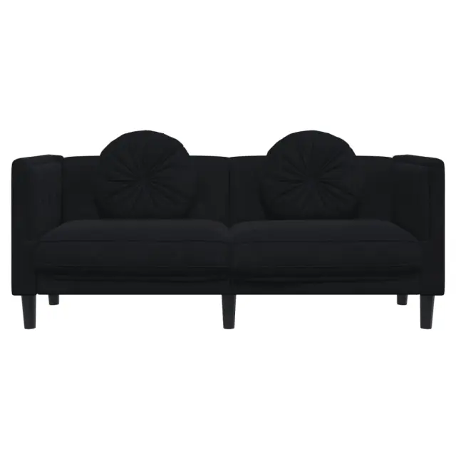 vidaXL Kavč dvosed z blazinami črn žamet