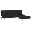 vidaXL Kavč dvosed z blazinami in stolčkom za noge črno blago