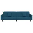 vidaXL Kavč dvosed z ležiščem in dvema blazinama moder žamet