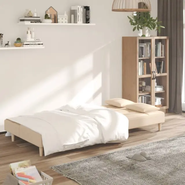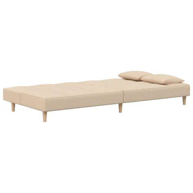 vidaXL Kavč dvosed z ležiščem in dvema blazinama krem blago