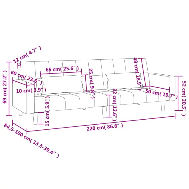 • Celotne dimenzije: 220 x 84,5 x 69 cm (D x Š x V)