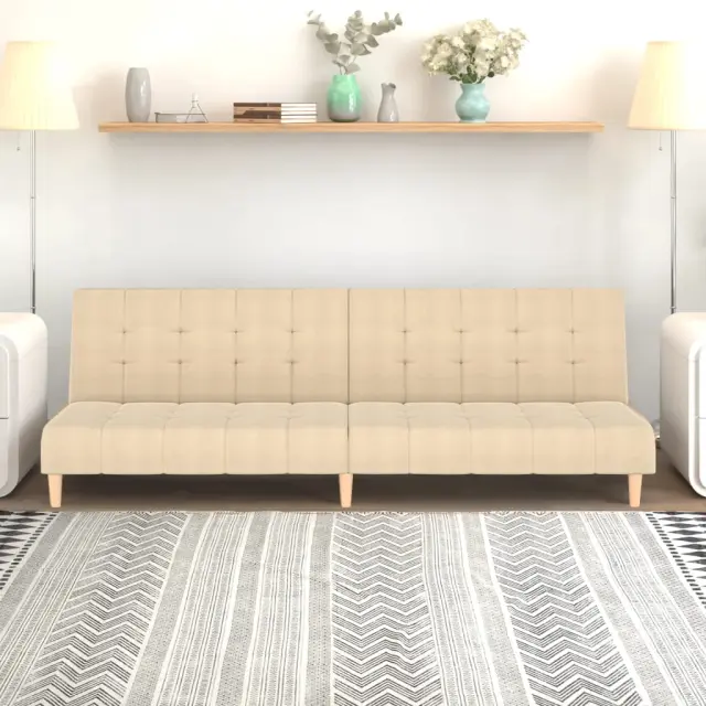 vidaXL Kavč dvosed z ležiščem krem blago
