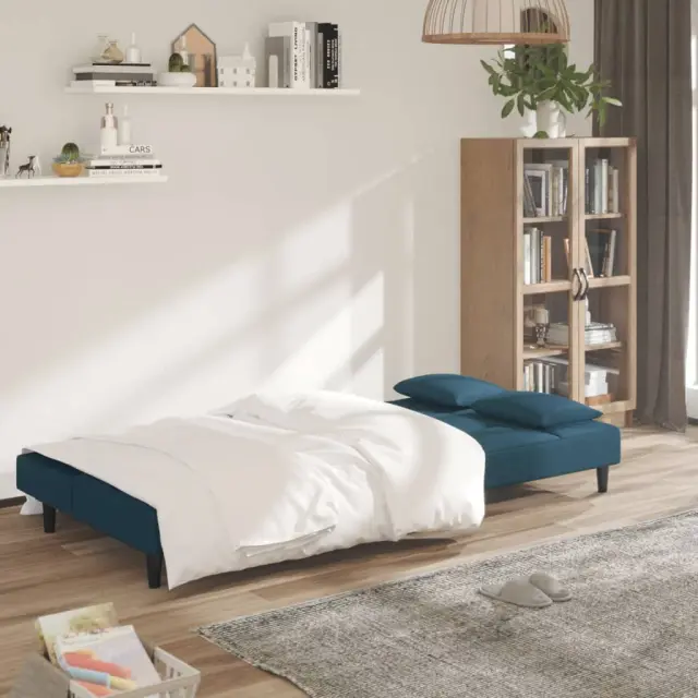 vidaXL Kavč dvosed z ležiščem in dvema blazinama moder žamet