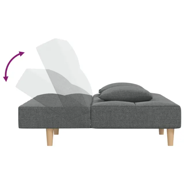 vidaXL Kavč dvosed z ležiščem in dvema blazinama temno sivo blago