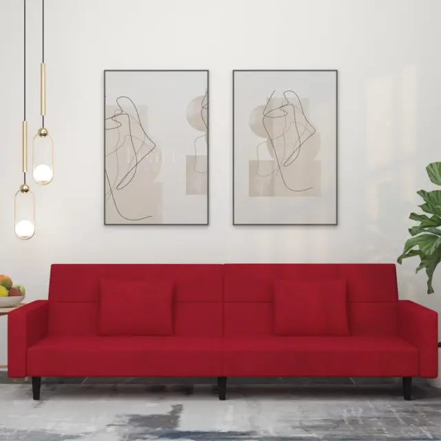 vidaXL Kavč dvosed z ležiščem in dvema blazinama vinsko rdeč žamet