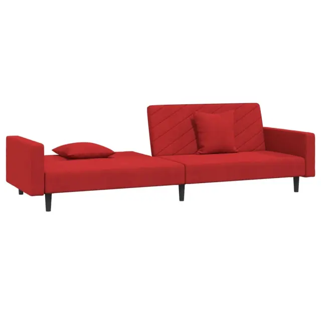 vidaXL Kavč dvosed z ležiščem in dvema blazinama vinsko rdeč žamet