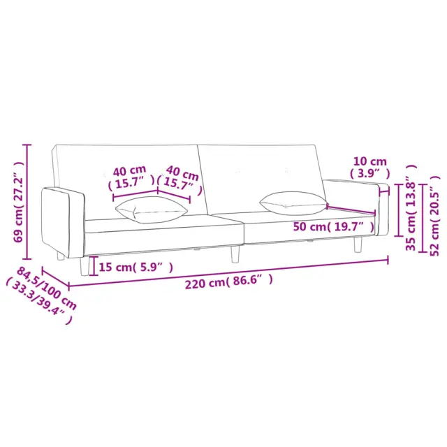 • Celotne dimenzije: 220 x 84,5 x 69 cm (D x Š x V)