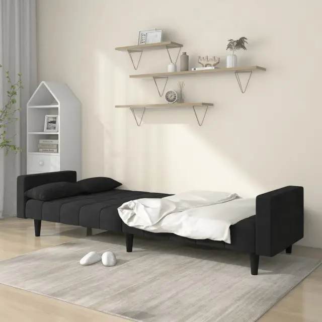 vidaXL Kavč dvosed z ležiščem in dvema blazinama črn žamet