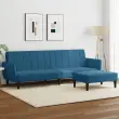 vidaXL Kavč dvosed z ležiščem in stolčkom za noge moder žamet