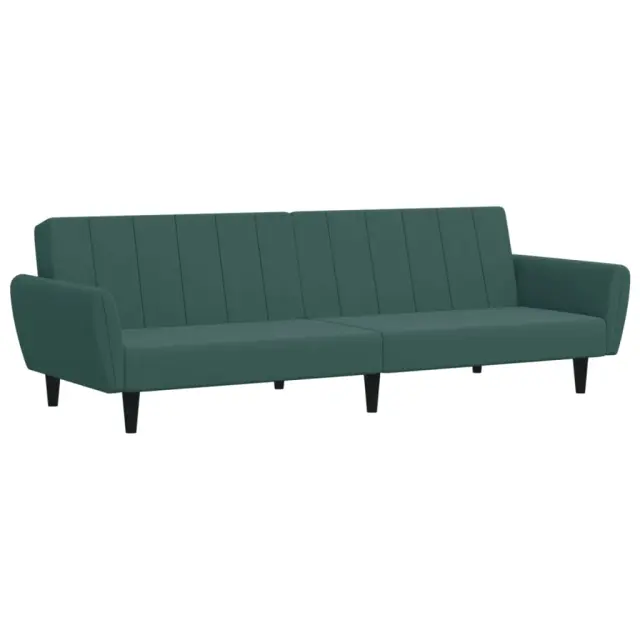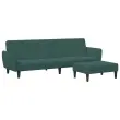 vidaXL Kavč dvosed z ležiščem in stolčkom za noge temno zelen žamet