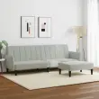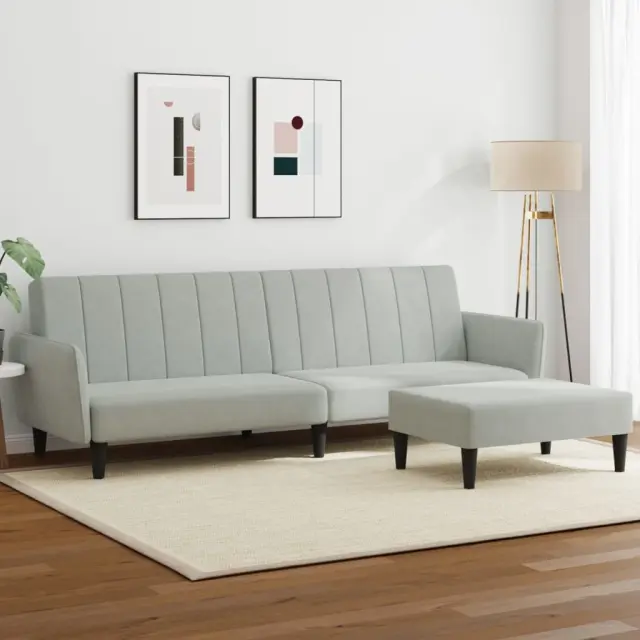 vidaXL Kavč dvosed z ležiščem in stolčkom za noge svetlo siv žamet