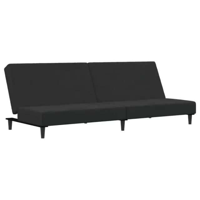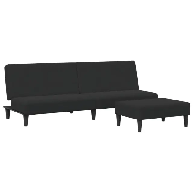 vidaXL Kavč dvosed z ležiščem in stolčkom za noge črn žamet