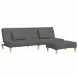 vidaXL Kavč dvosed z ležiščem in stolčkom za noge temno sivo blago
