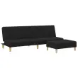 vidaXL Kavč dvosed z ležiščem in stolčkom za noge črno blago