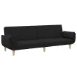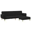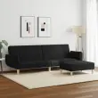 vidaXL Kavč dvosed z ležiščem in stolčkom za noge črno blago