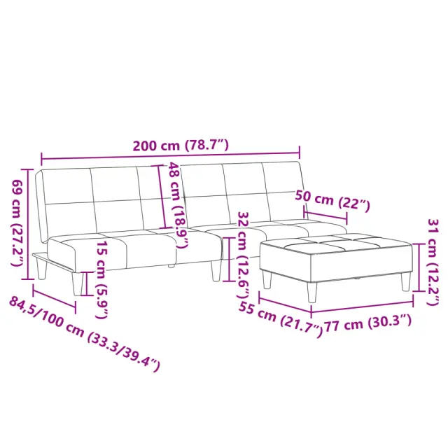 • Celotne dimenzije: 200 x 84,5 x 69 cm (D x Š x V)