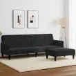 vidaXL Kavč dvosed z ležiščem in stolčkom za noge črn žamet