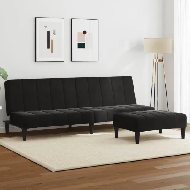vidaXL Kavč dvosed z ležiščem in stolčkom za noge črn žamet