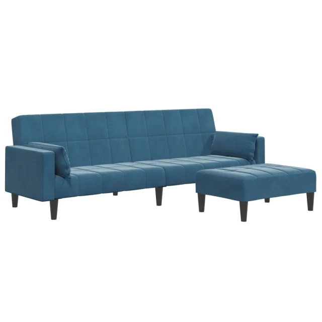 vidaXL Kavč dvosed z ležiščem in stolčkom za noge moder žamet