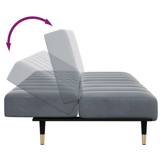 vidaXL Kavč dvosed z ležiščem in stolčkom za noge temno siv žamet