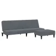 vidaXL Kavč dvosed z ležiščem in stolčkom za noge temno siv žamet