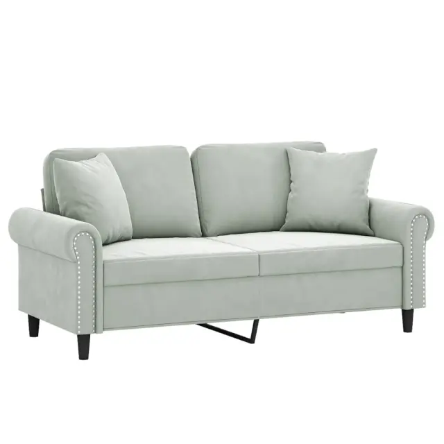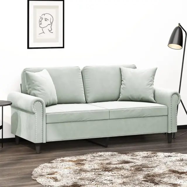 vidaXL Kavč dvosed z okrasnimi blazinami svetlo siv 140 cm žamet