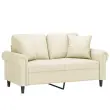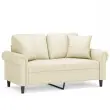 vidaXL Kavč dvosed z okrasnimi blazinami krem 120 cm umetno usnje