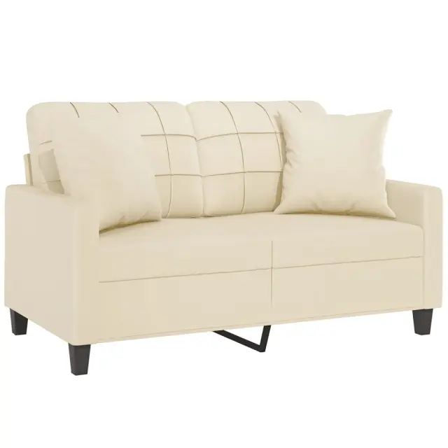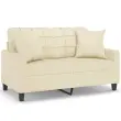 vidaXL Kavč dvosed z okrasnimi blazinami krem 120 cm umetno usnje