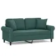 vidaXL Kavč dvosed z okrasnimi blazinami temno zelen 140 cm žamet